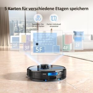 Lubluelu-Staubsaugerroboter mit Wischfunktion, 3000Pa Laser-Navigationsgerät mit 5 Karten, 55 dB, mit App-Steuerung, ideal für Tierhaare, Teppiche, Hartböden